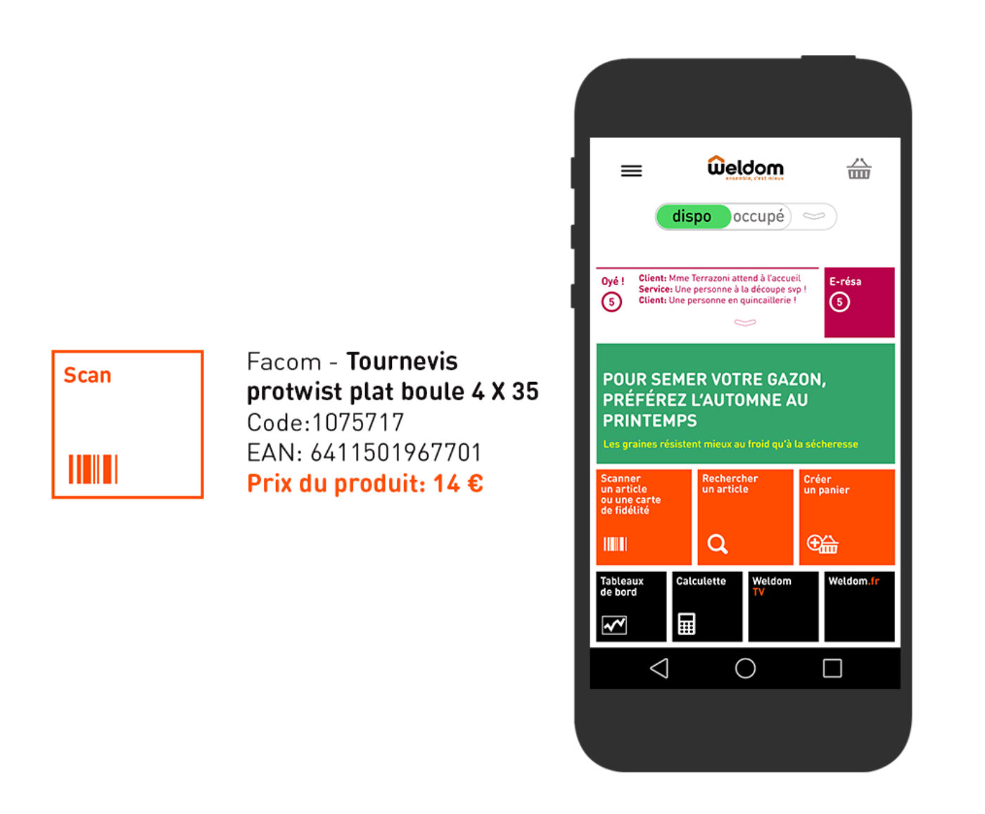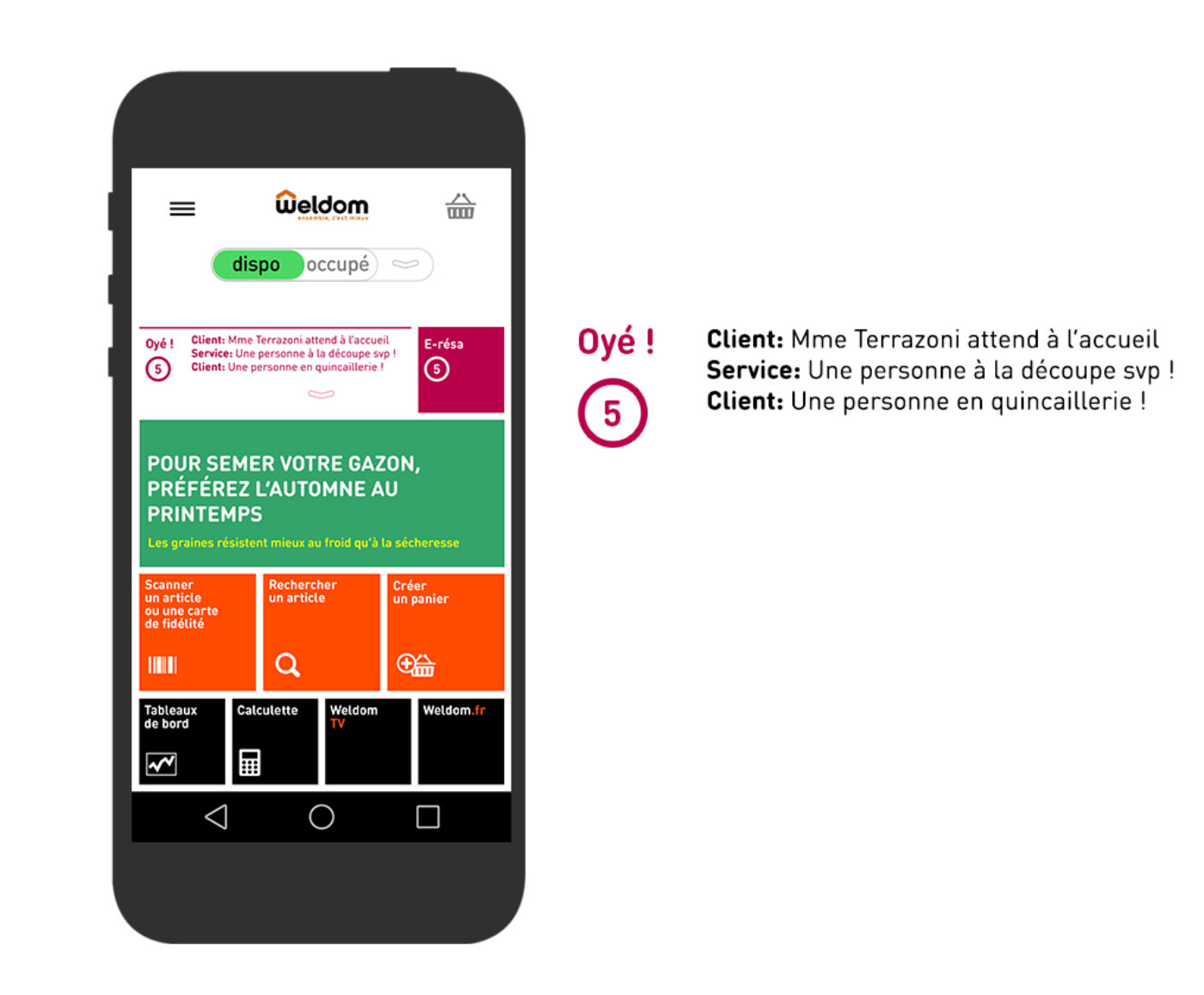 Un mode dispo/ occupé, selon que le vendeur est avec le client ou non